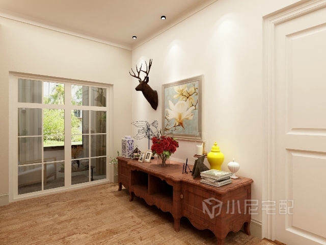 走廊的盡頭放一張歐式風(fēng)格的桌子,擺放一些小飾品,增加了空間的利用和美感。