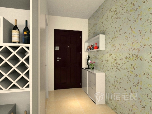 入戶門口放一簡單鞋柜,上面為隔板柜點(diǎn)綴。