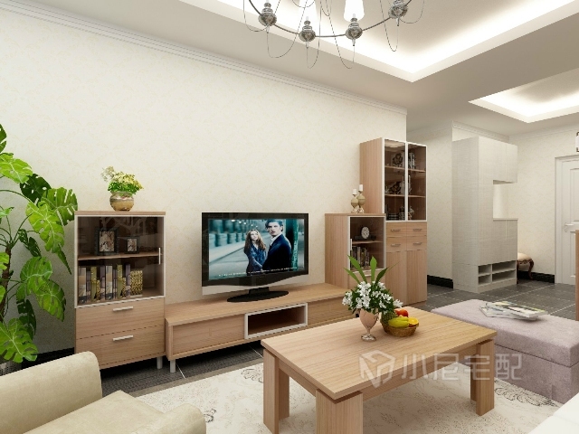 金絲胡桃的電視柜組合搭配綠植,營(yíng)造了與大自然無(wú)限親近的格局。