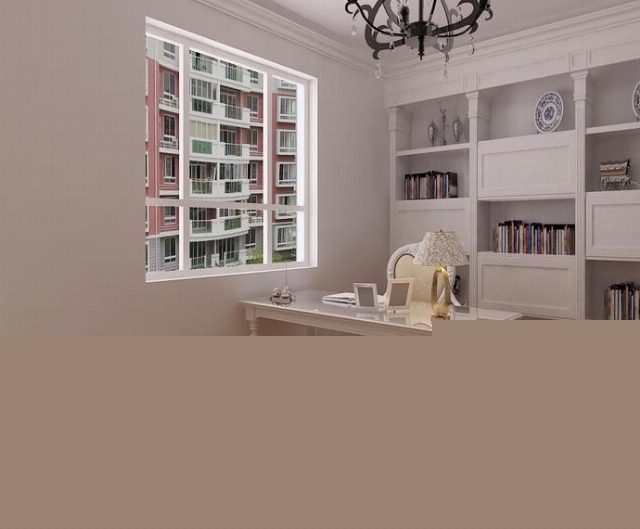 書房主要以灰白為主,給人一個(gè)安靜閱讀的地方。