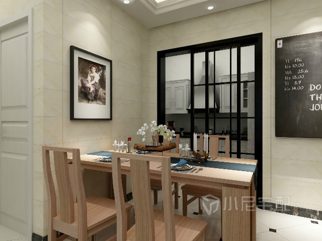 餐廳的設(shè)計十分簡單,出于對空間的利用,餐廳只占了很小的一部分,用一幅畫作為點綴。