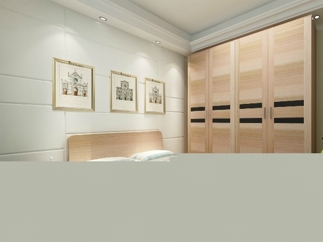 大大的衣柜增加了臥室的儲物功能,造型新穎時尚,簡潔大方。