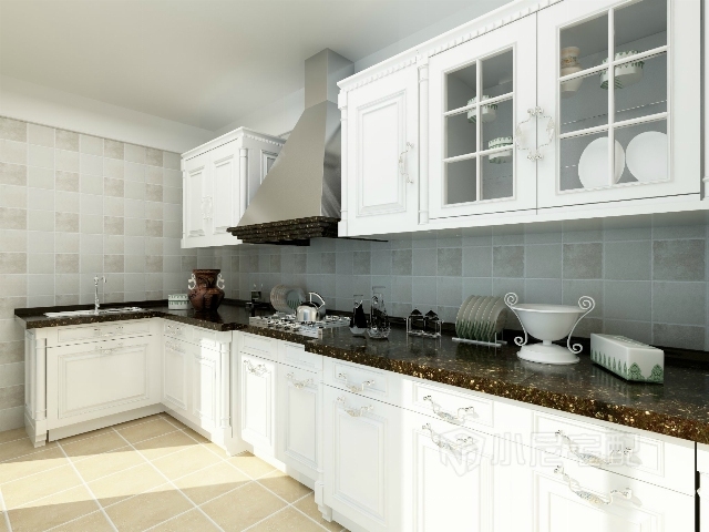 白色的櫥柜顯得明亮整潔,石英石的臺面耐臟耐磨,功能齊全實(shí)用。