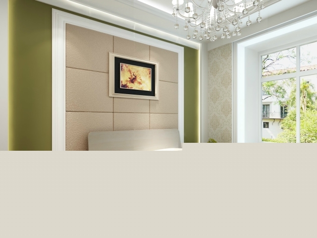 具有現(xiàn)代感的背景墻,草綠色的配色,讓空間顯得十分明亮開朗。