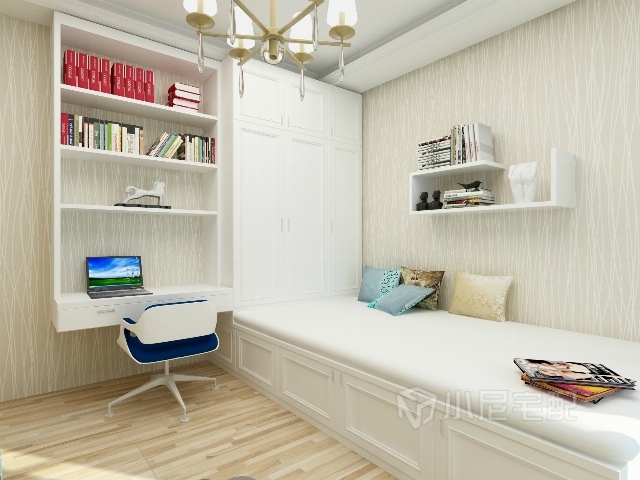 書房設(shè)置了榻榻米和書桌的組合,提高空間利用率,客人來的時候可以當(dāng)做客房。