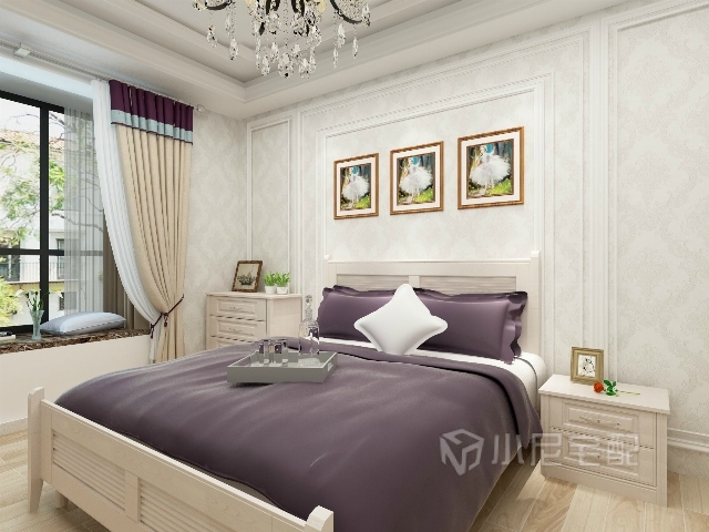 歐式的背景墻和裝飾畫,與客廳餐廳配套的床和柜,顯得整體協(xié)調(diào)統(tǒng)一。