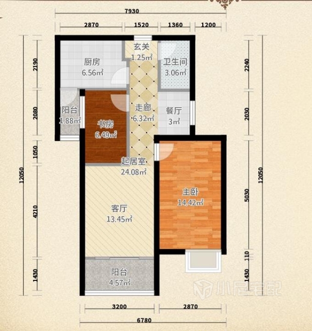 書桌加榻榻米,能夠合理的利用小戶型空間。