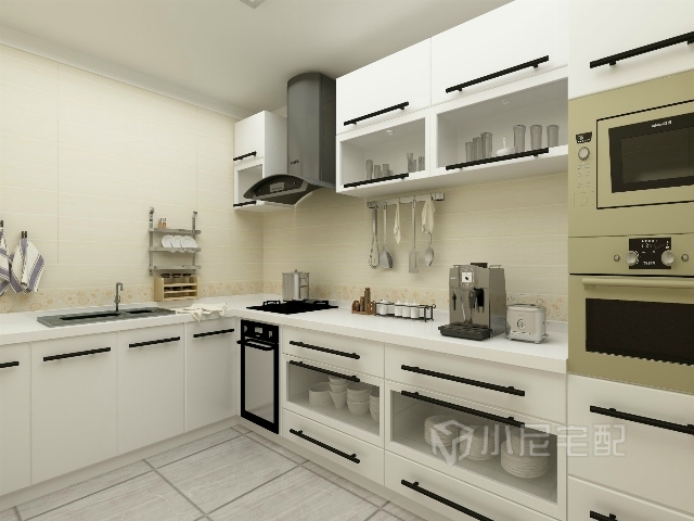 白色的櫥柜組合,功能齊全,簡潔大方。