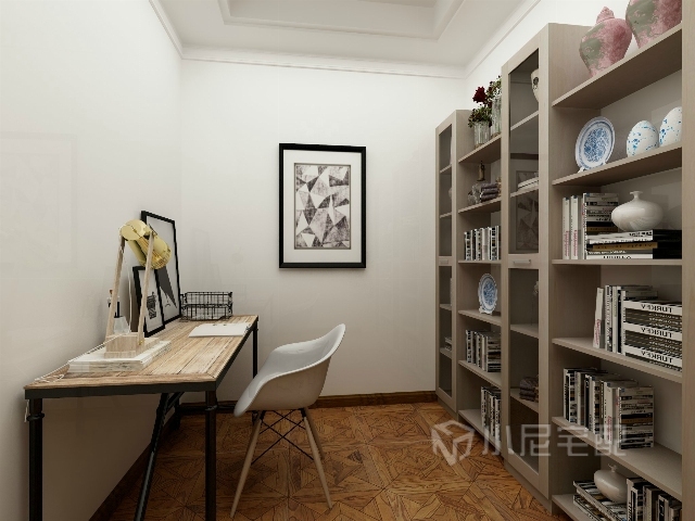 書房的空間較小,利用大書架,工業(yè)風(fēng)的書桌,造型簡(jiǎn)約大氣。
