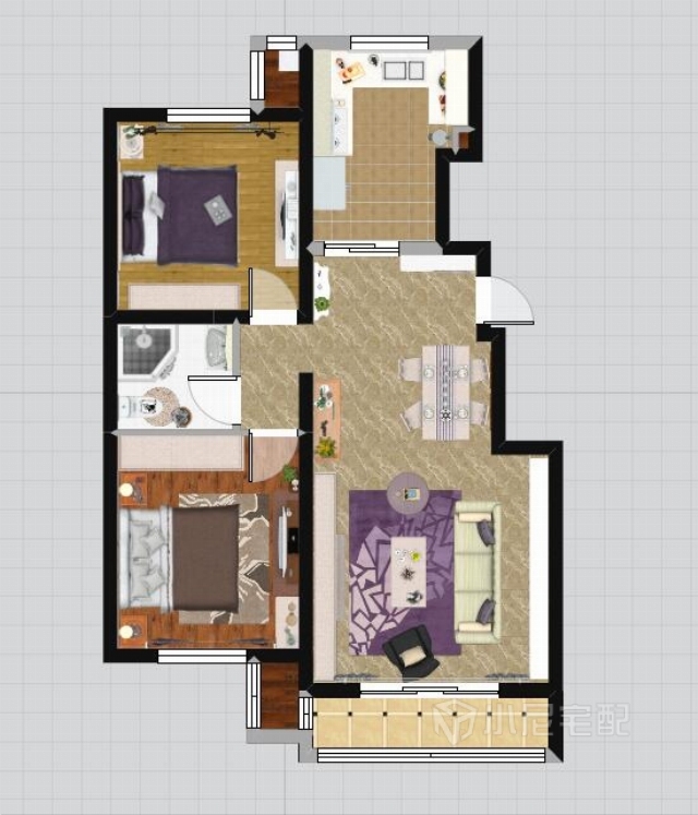 紫色的地毯加以點綴,增加神秘高雅的格調(diào)。