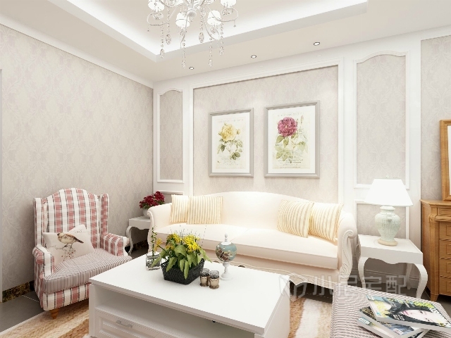 淡紫色的墻紙,簡(jiǎn)歐的白色的背景墻,時(shí)尚清新。