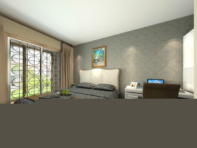現(xiàn)代感的窗簾和舒適的床,還有漂亮的花,給人以溫馨的映象。