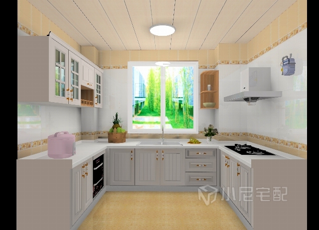簡歐式的廚房,白色和原木色的搭配,也給人以純凈田園般的映象。