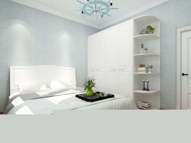 次臥的墻面采用的非常環(huán)保,又具有裝飾功能的硅藻泥