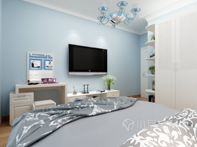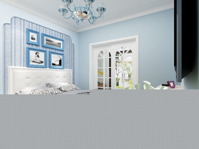 從窗口看過去,臥室刷淡藍(lán)色的氫氣,有一種活力的釋放