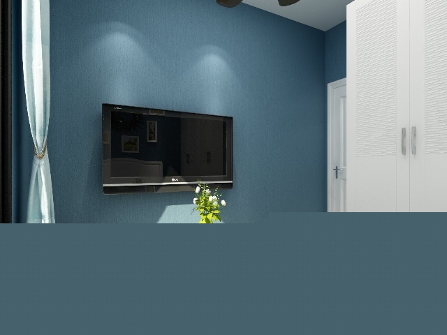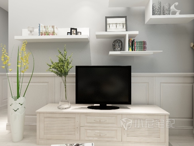 電視背景也沒(méi)多做修飾,放置幾個(gè)擱板增加儲(chǔ)物功能即可