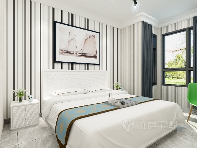 臥室采用黑白條紋墻紙,整個(gè)空間的質(zhì)感提升了起來(lái)