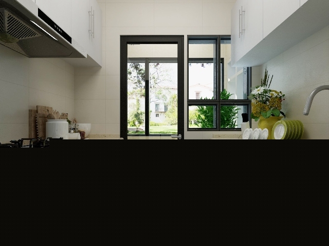 廚房采用白色為主色,黑色為套色的櫥柜,顯得不那么突兀
