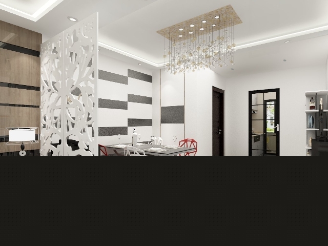 用鏤空的花紋隔斷,劃分客廳與餐廳的空間