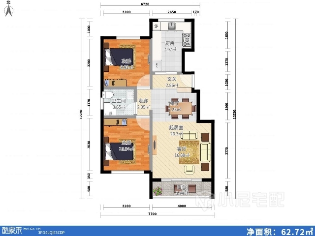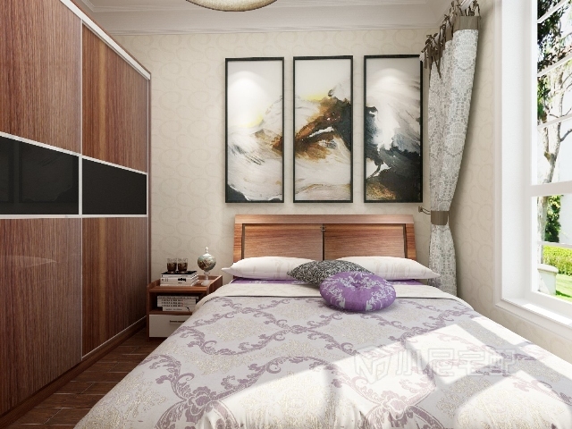 臥室家具采用原木色為主色,白色為套色,有些混搭的藝術氣息