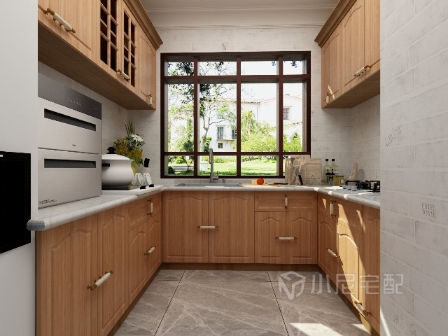 廚房的櫥柜采用吸塑門板做出口線的造型,高端大氣