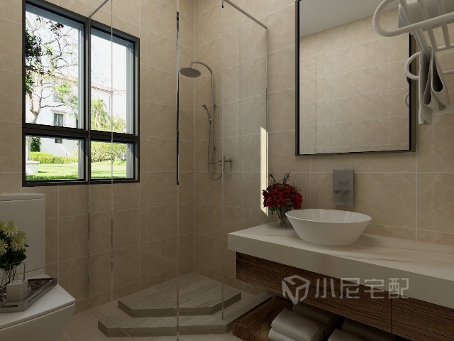 衛(wèi)生間采用了黃色為主調的設計,顯得不那么冰冷,很有溫馨感