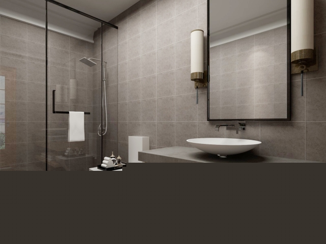 衛(wèi)生間采用了冷色調(diào),高級灰