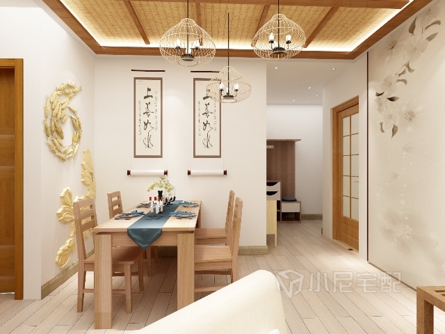 整個設(shè)計是日式風(fēng)格,由于傳統(tǒng)的原因,家具講究比較低矮,自然