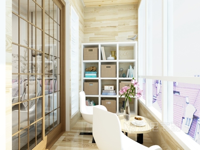 陽臺上放一個休閑椅和小塌,很有溫馨的感覺