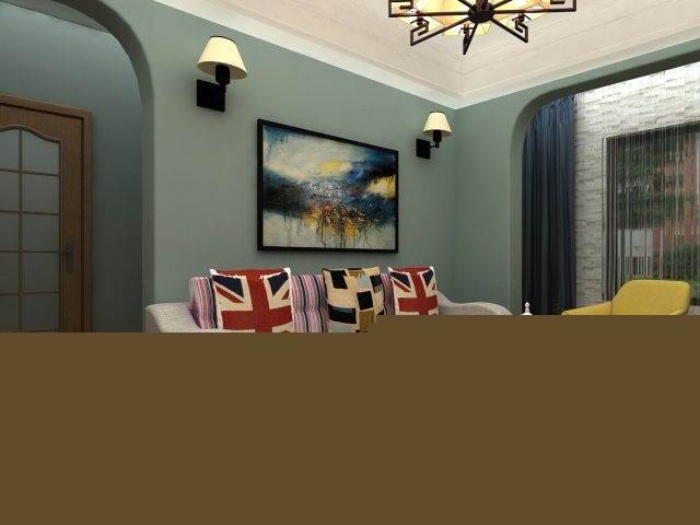 沙發(fā)背景用一幅大的抽象畫來做裝飾,很大氣的感覺