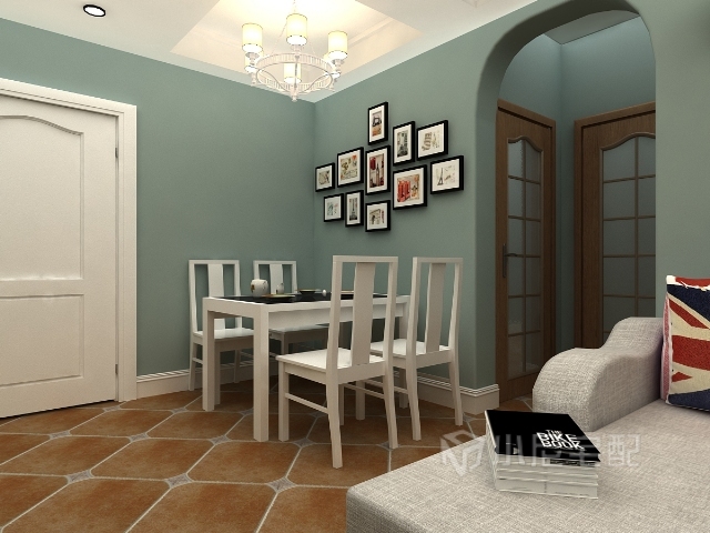 餐廳用小的裝飾墻來做背景,錯(cuò)列排放,很有層次感