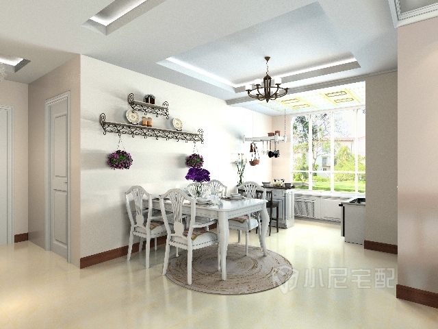 簡單實用的餐廳,餐邊擱板即可儲物又可掛上花環(huán),使人覺得賞心悅目