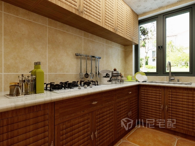 櫥柜采用木皮貼面,紋理自然
