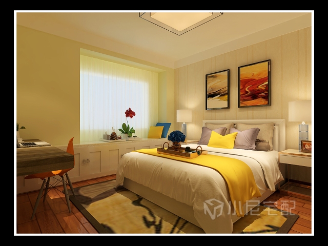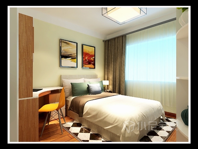 簡(jiǎn)單的兩幅壁畫(huà),加上實(shí)用的電腦桌,讓整個(gè)臥室即使用有溫暖