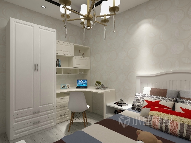 兒童房配有衣柜和轉角書桌,具有充足的儲物空間。