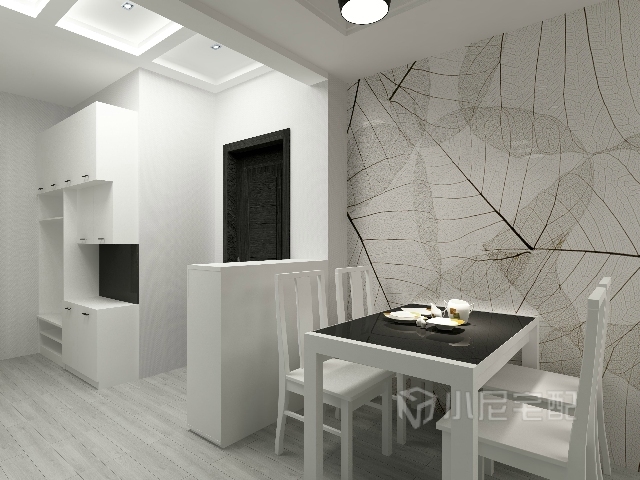 整體色調以黑白灰為主,偏后現(xiàn)代風格,家具多為白色,時尚簡潔。