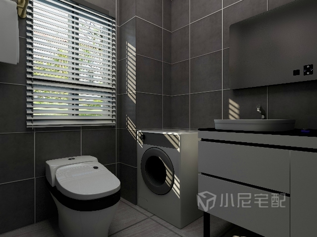 衛(wèi)生間空間合理運用,灰色墻磚時尚簡潔。