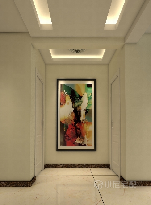 走廊的吊頂采用兩邊的燈槽設(shè)計,使餐廳和客廳更有連接性.