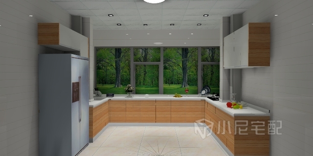 u型的廚房設(shè)計,更大的操控空間和儲物空間,顏色比較鮮明
