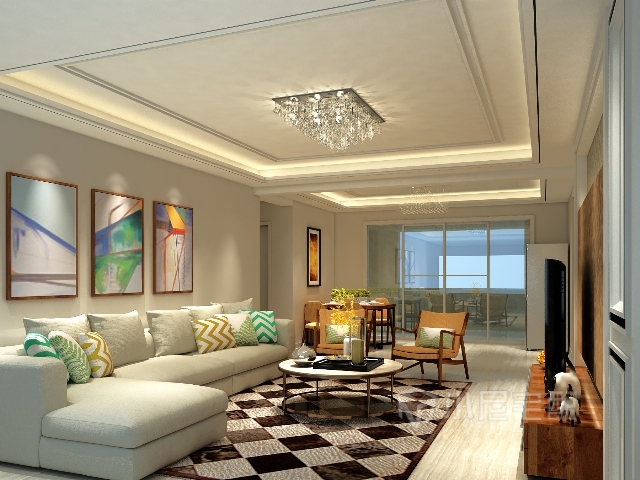 簡單的電視墻更加凸顯整個(gè)客廳簡潔