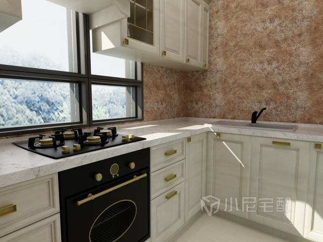 歐風格廚房裝修在顏色上以白色為主。整個廚房沒有加入多余的顏色點綴,也沒有華麗的裝飾。