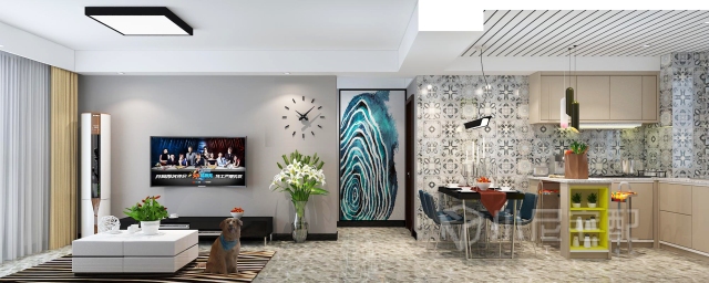 由于原始戶型廚房較小,所以經(jīng)過墻體拆改,將餐廳廚房,門廳搭配到一起,整體顏色搭配采用小尼地平線系列,與花磚形成強(qiáng)烈對比,使整個空間更溫馨,更出彩