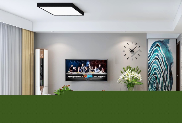 客廳電視背景墻采用素色壁紙滿鋪,不作任何裝飾,簡約明快