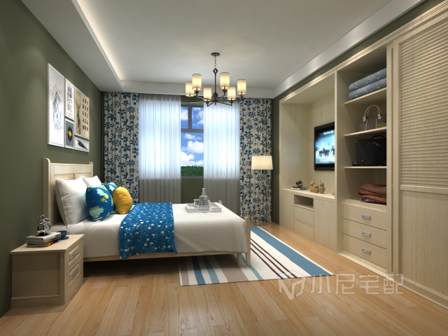 柔軟舒適的大床,多功能的衣柜,簡易的書桌,梳妝臺,一應(yīng)俱全