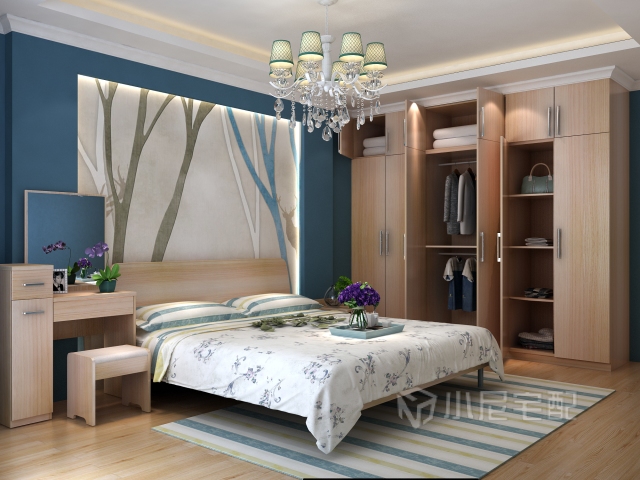 臥室的布置簡(jiǎn)約又溫馨,大大的衣柜輕松解決儲(chǔ)物問(wèn)題