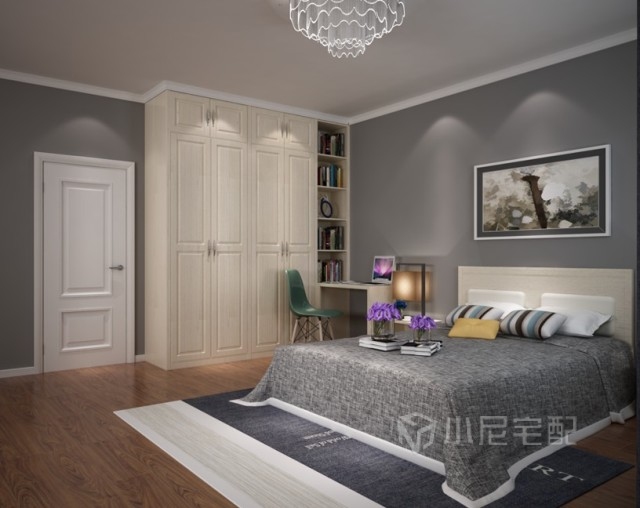 定制柜體包含了衣柜和電視柜,整面墻的設計顯得空間更加統(tǒng)一