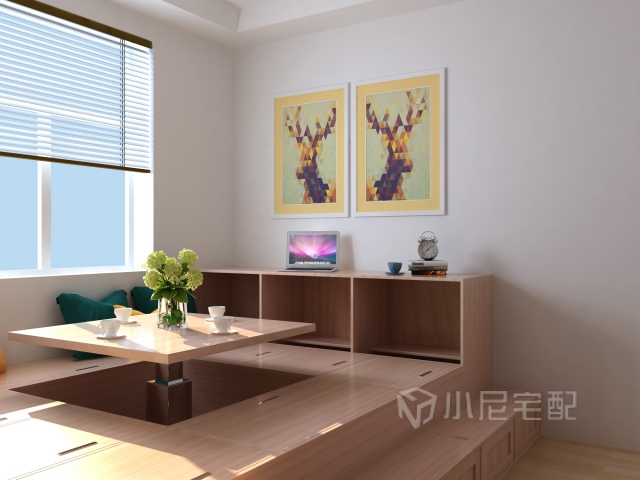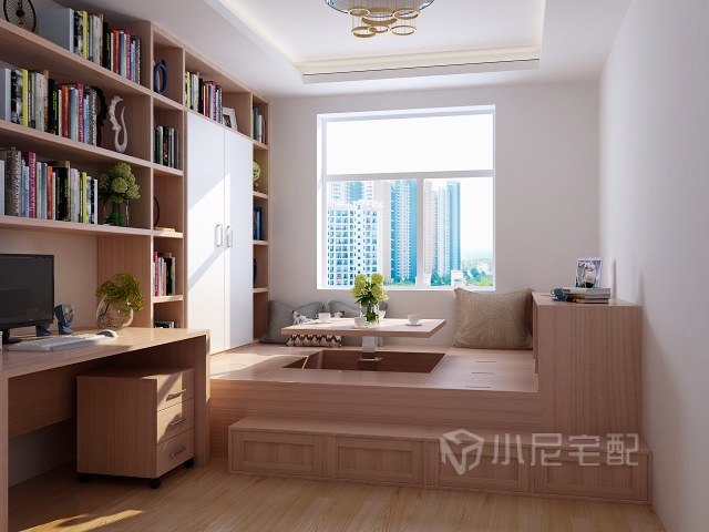 榻榻米加上實(shí)用的電腦桌,讓整個書房有閑適。