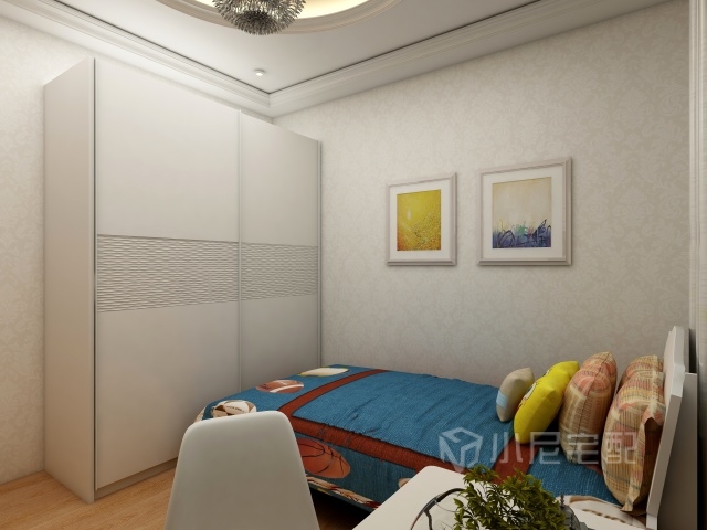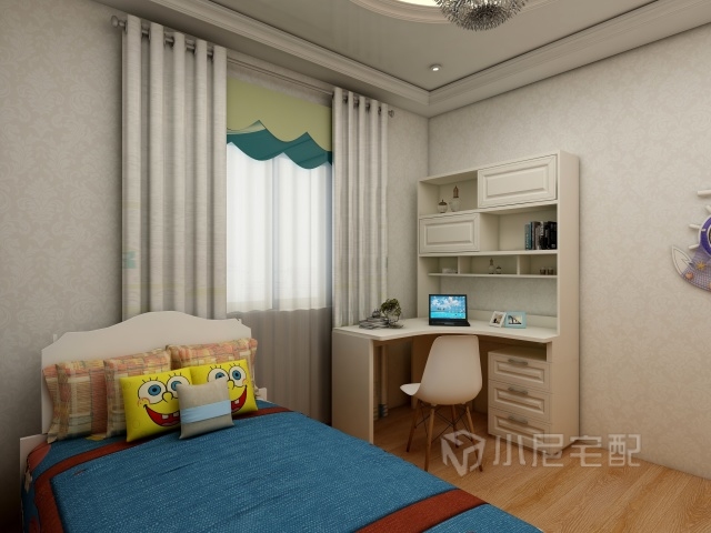 兒童房采光性好,色彩搭配比較俏皮,留有學(xué)習(xí)區(qū)域和活動區(qū)域。