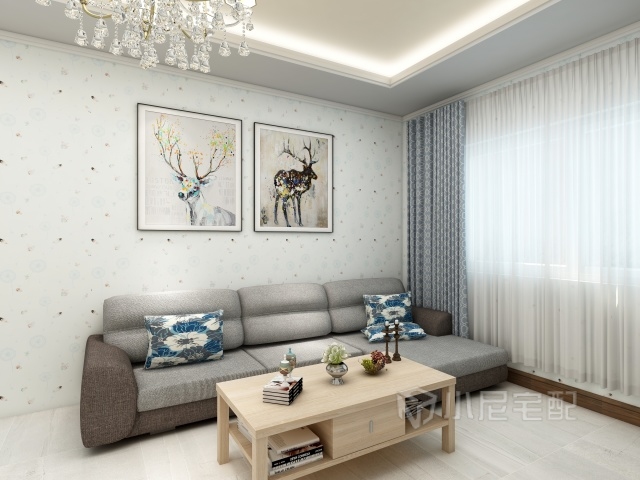 客廳采光好,冷色也能搭配的如此溫馨