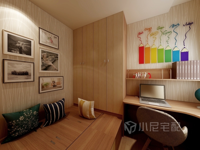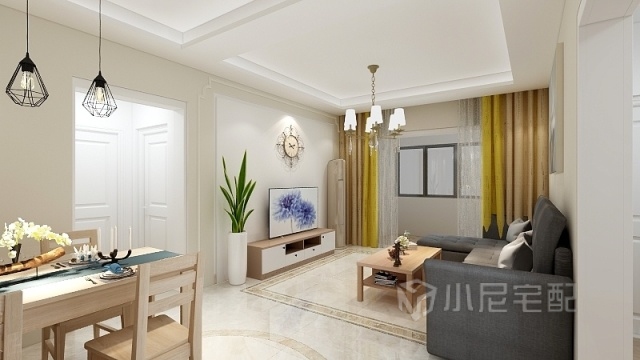 整體以簡約大線條,溫婉小線條為主線,色彩選用亮黃色為跳躍色,為家增添了動感和活動。